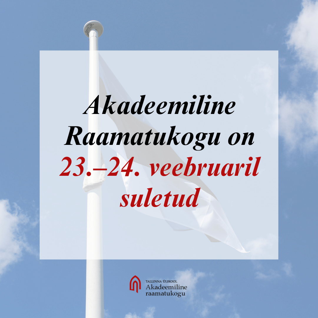Teadusraamatukogu ja õpikeskus on suletud 23.–24.02.2026. E-kataloog ESTER tellimused täidetakse taasavamisel. Tagastusautomaati saab teavikuid tagastada ka siis, kui raamatukogu on suletud. Raamatukogu soovib kõigile...