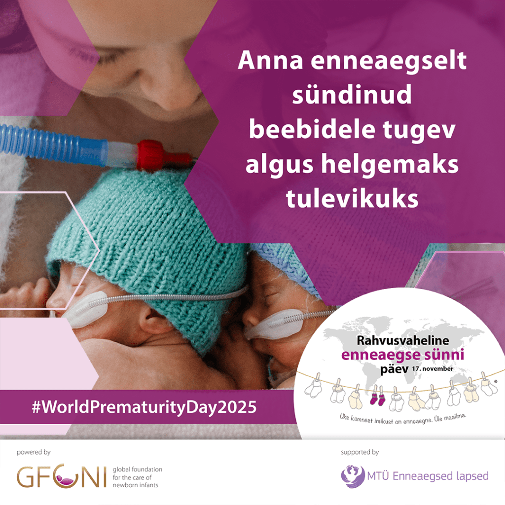 Täna, 17. novembril, tähistatakse ülemaailmset enneaegse sünni päeva. Igal aastal sünnib maailmas ligi 13,4 miljonit last liiga vara, enne 37. rasedusnädala täitumist. Mida varem laps sünnib, seda rohkem tuge ja erihoolt ta vajab. Lapse ellujäämine ja tervis ei tohiks sõltuda sellest, millises haiglas, linnas või riigis ta sünnib.