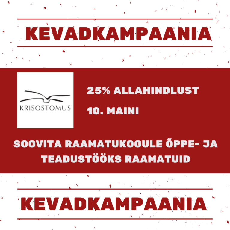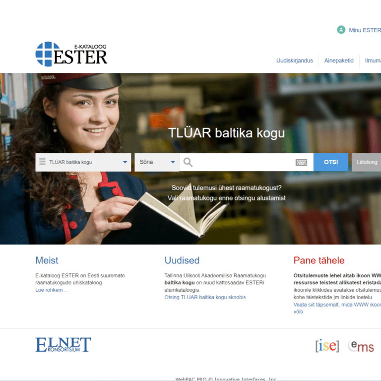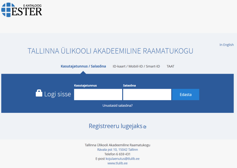 Teadusraamatukogu ja õpikeskus on suletud 22.12.2025 – 04.01.2026. E-kataloog ESTER tellimused täidetakse taasavamisel. Tagastusautomaati saab teavikuid tagastada ka siis kui raamatukogu on suletud. Raamatukogu soovib