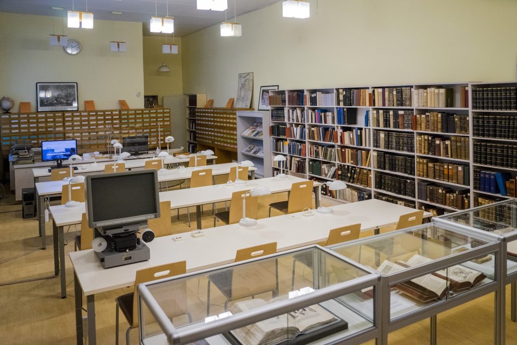 Teadusraamatukogu 1. korrusel asuva lugemissaali avariiulitel on olulisemad teatmeteosed Eesti ja endiste Balti provintside kohta, Eesti trükisõna retrospektiivsed bibliograafiad ning mitmed arhiivide teatmikud, Riigi Teataja 1918-1940, vanemad keelesõnastikud, entsüklopeediad ja erialaleksikonid, teatmeteosed ja trükikataloogid vanatrükiste ja haruldaste raamatute kohta, uudiskirjanduse väljapanek.